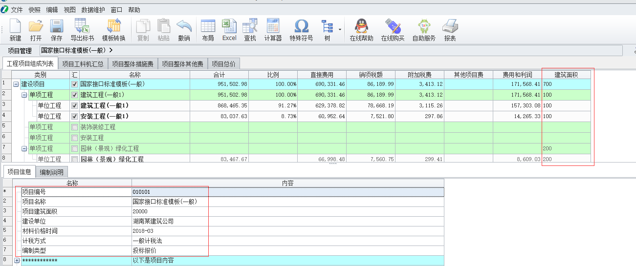 1、啟動(dòng)智多星項(xiàng)目造價(jià)管理軟件,打開(kāi)已經(jīng)調(diào)整好的工程文件,將下面的項(xiàng)目信息以及后面的建筑面積填寫完整。(單位工程建筑面積一定要填寫!)