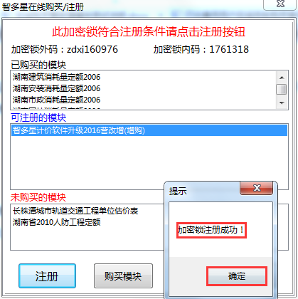 第六步:如需繼續(xù)購(gòu)買(mǎi)其他模塊,請(qǐng)點(diǎn)擊‘購(gòu)買(mǎi)模塊’按鈕;如無(wú)需購(gòu)買(mǎi),關(guān)閉對(duì)話框即可,此時(shí)您的加密鎖已成功完成2016營(yíng)改增升級(jí)。