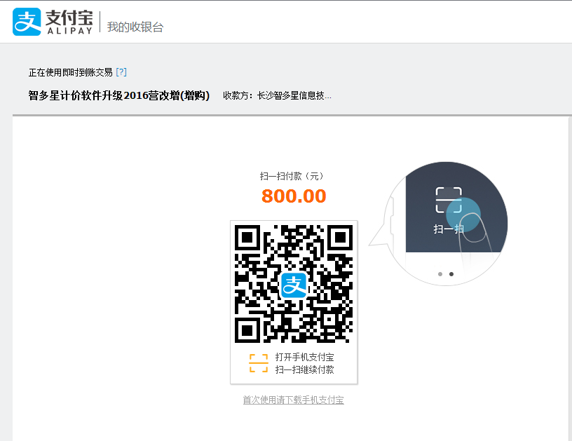 (2)如果您選擇支付寶付款,將在瀏覽器出現(xiàn)以下界面: