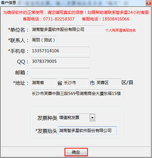 第五步:系統(tǒng)會(huì)自動(dòng)彈出該加密鎖之前收錄的客戶(hù)信息,如信息不正確,請(qǐng)務(wù)必將您的正確信息進(jìn)行修改后提交,以免給您的軟件升級(jí)帶來(lái)不必要的煩惱;如需開(kāi)具發(fā)票,請(qǐng)?jiān)陂_(kāi)票處打勾,選擇需要開(kāi)票的類(lèi)型—普通發(fā)票/增值稅發(fā)票,輸入發(fā)票抬頭后點(diǎn)擊‘確定’按鈕: