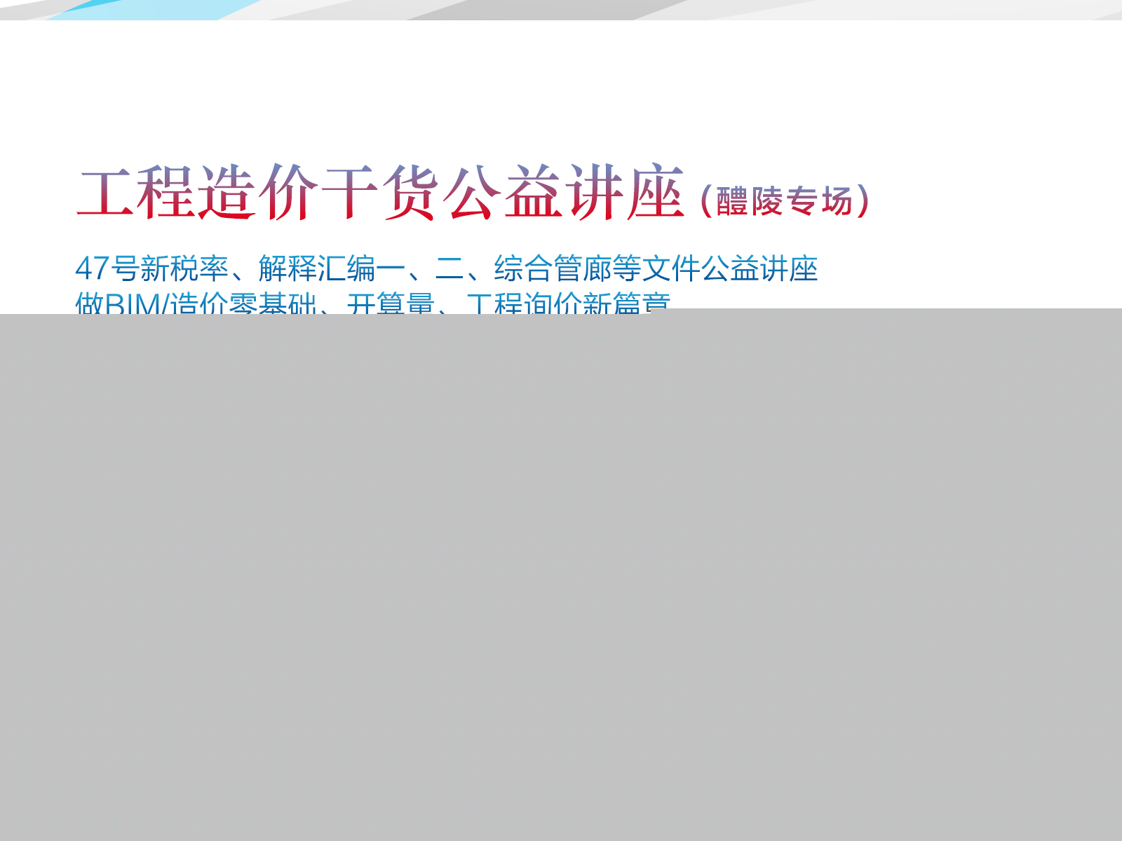1.解讀《47號新稅率、解釋匯編一、二、綜合管廊》等相關(guān)文件和疑難問題,現(xiàn)場講解從廣大造價(jià)人員收集過來的問題。(約120分鐘)2.算量軟件的運(yùn)用價(jià)值( 約15分鐘)